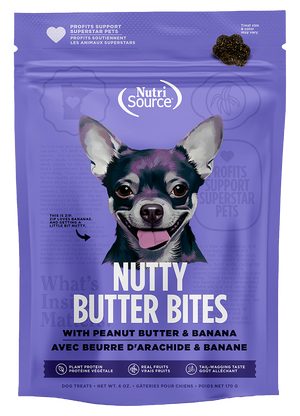 NutriSource Peanut Butter & Banana Nutty Butter Bites are made with high-quality plant protein.