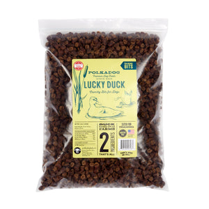 Polkadog Sfizis Lucky Duck Dehydrated Dog Treats make training even more fun! Lovingly made in Boston, these savory nibbles contain all-natural farm-raised duck liver and potato flour dried into tasty bite-sized treats. Irresistibly crunchy, these wholesome treats are free of additives or preservatives and they are low-fat and protein-rich for a snack you can feel good feeding to your BFF. Plus, they’re formulated without grain to be gentle on sensitive stomachs.
