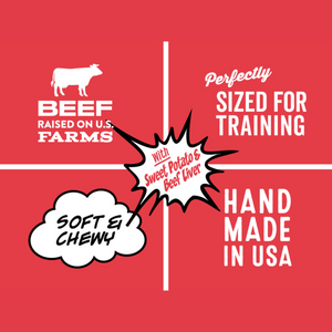 After an interminable day of chewing shoes and staring through windows, where’s the threshold, the moment you relax your lonesome vigil? The sound of a door opening? The first scratch behind your ears? No! You know you’ve earned your keep when, instead of kibble, your human serves you juicy steak and sweet potato fries. Brothers and sisters, imagine that singular moment transformed into soft nuggets of wonder. Wonder nuggets of U.S. beef and sweet potato! There’s your reward. You’ve earned it.