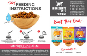 All-natural dog and cat topper with superfood ingredients to create a healthy addition to your pet's diet. Featuring pumpkin as a rich source of fiber, combined with easy-to-digest simple ingredients. Sprinkle as a topper on their meal or mix with water for a little mid-day treat.