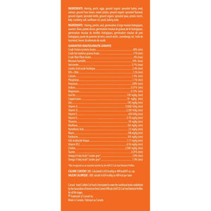 Fish Formula Ingredients: Herring, perch, eggs, organic sprouted barley seed, salmon, ground fava beans, sweet potato, organic sprouted flaxseed, organic sprouted lentils, organic sprouted peas, potato starch, kelp, cranberry, sea salt, sunflower oil, nutritional yeast, natural baking soda.