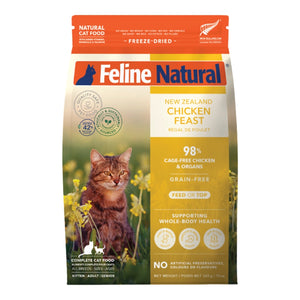 Our freeze-dried Chicken Feasts are expertly crafted for whole-body health and made with 98% cage-free chicken and organs, along with green-lipped mussels, vitamins, minerals and taurine.