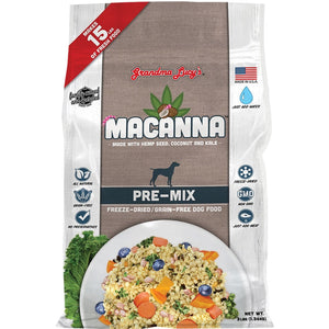 Hawaiian-inspired grain-free recipe that is great for dogs with sensitivities and our gray-faced senior dogs. Macanna's unique superfood pre-mix recipe combines high-quality coconut, turmeric, and hemp to provide gentle digestive support and natural anti-inflammatory benefits. This holistic blend delivers premium nutrition that's easy on sensitive stomachs while supporting health and overall wellness, making it the perfect choice for pets.