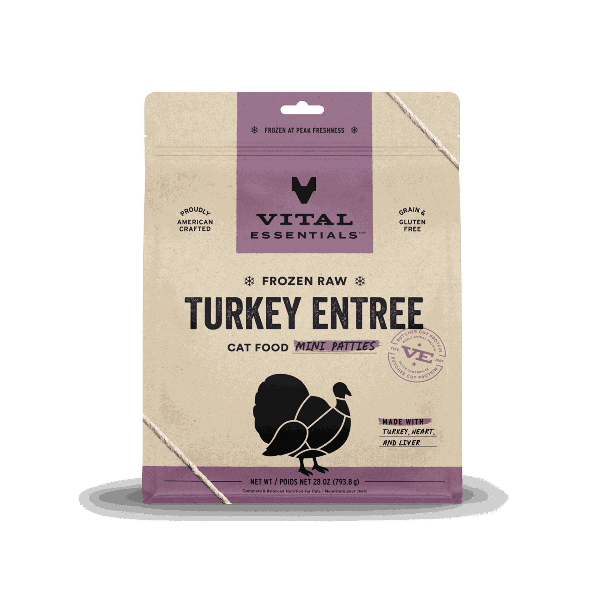 Vital Essentials Frozen Turkey Mini Patties Raw Cat Food