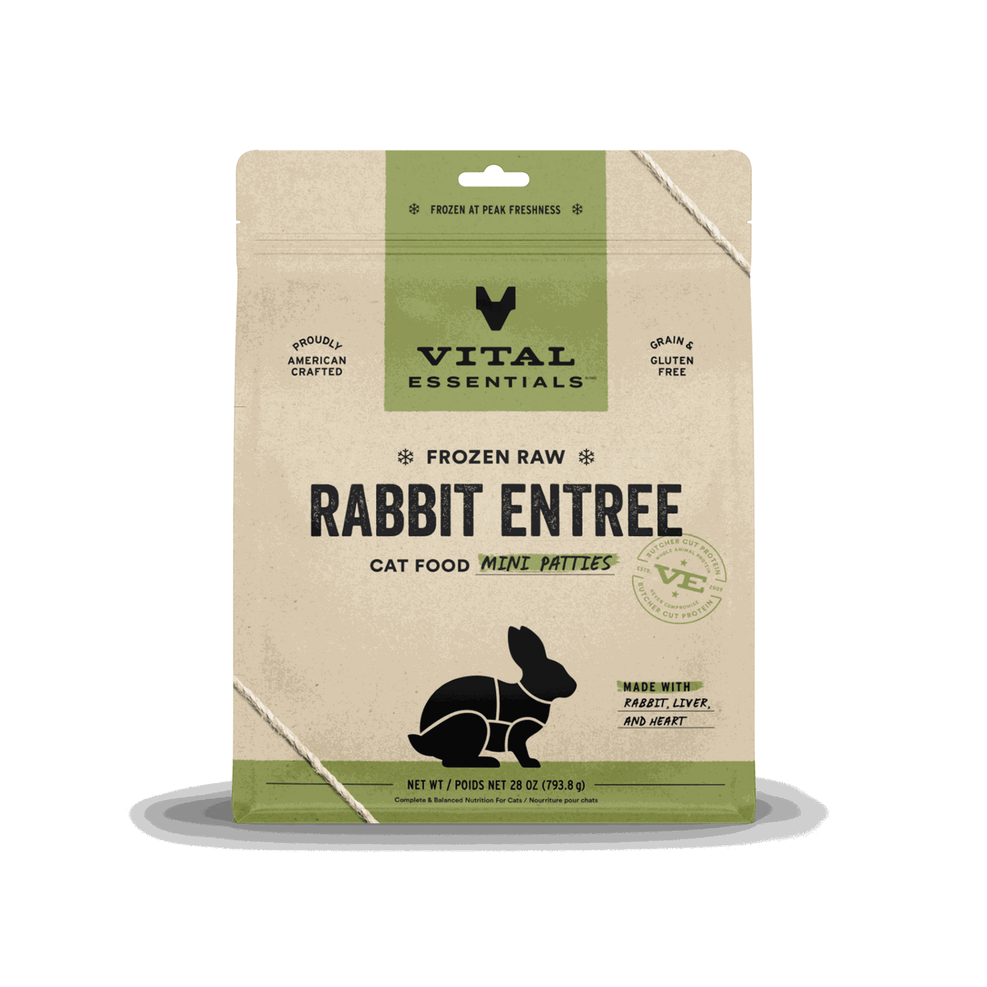 Vital Essentials Frozen Rabbit Mini Patties Raw Cat Food
