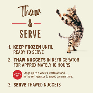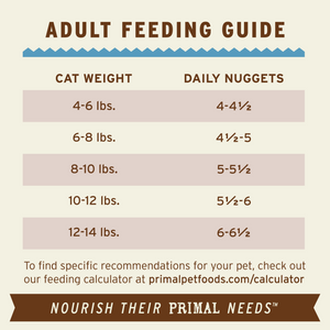 Nourish your cat’s primal needs with complete and balanced, easy-to-use Primal Frozen Raw Nuggets. Our Rabbit Recipe raw cat food features farm-raised, antibiotic-free rabbit raised without steroids or added hormones. There’s no need to grind, chop, measure, or mix. Simply thaw and serve as a meal or a mixer to keep your cat in their prime. Available in 3-pound resealable bags.