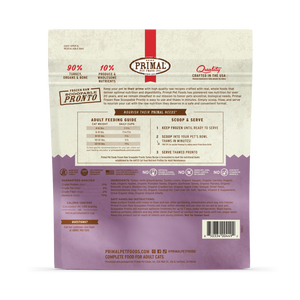 This nourishing, biologically appropriate raw cat food thaws in minutes and comes in a convenient, bite-sized, easy-to-portion format. Primal’s Turkey Recipe Frozen Raw Scoopable Pronto features cage-free turkey raised without antibiotics, steroids, or added hormones and other real, whole foods that deliver optimal nutrition and digestibility. Just scoop and serve to keep your cat in their prime. Available in 1-pound resealable bags.