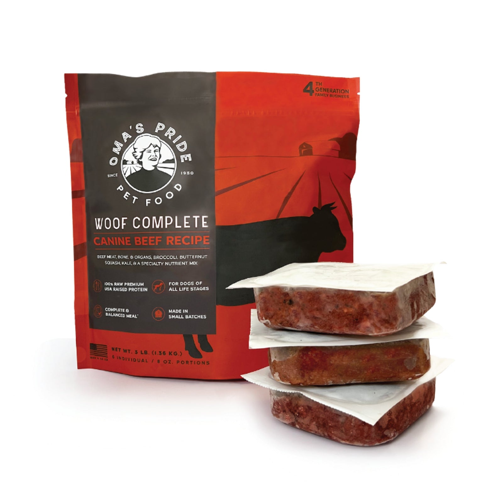 Oma's Pride Woof Complete Canine Beef Frozen Raw Dog Food