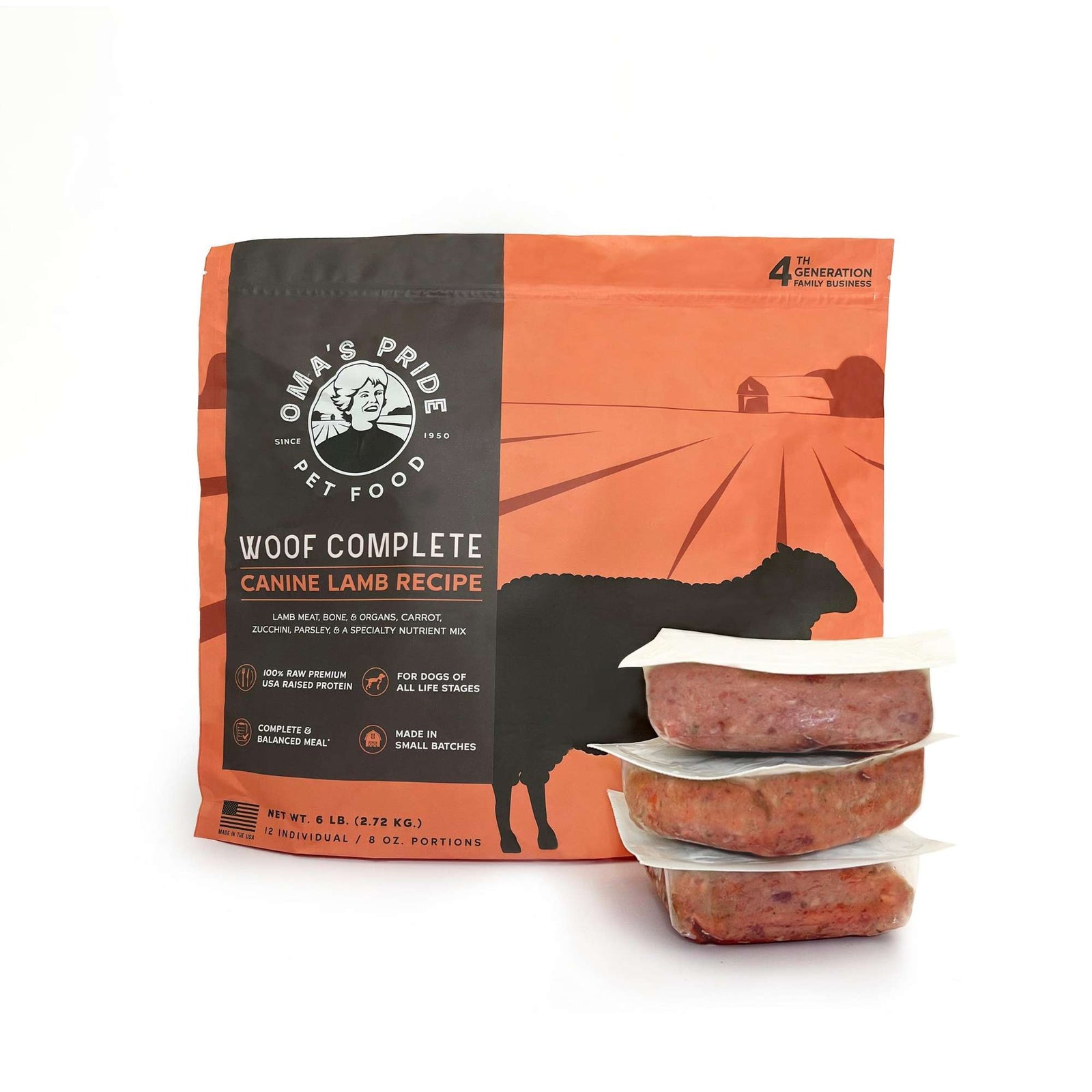 Oma's Pride Woof Complete Canine Lamb Frozen Raw Dog Food