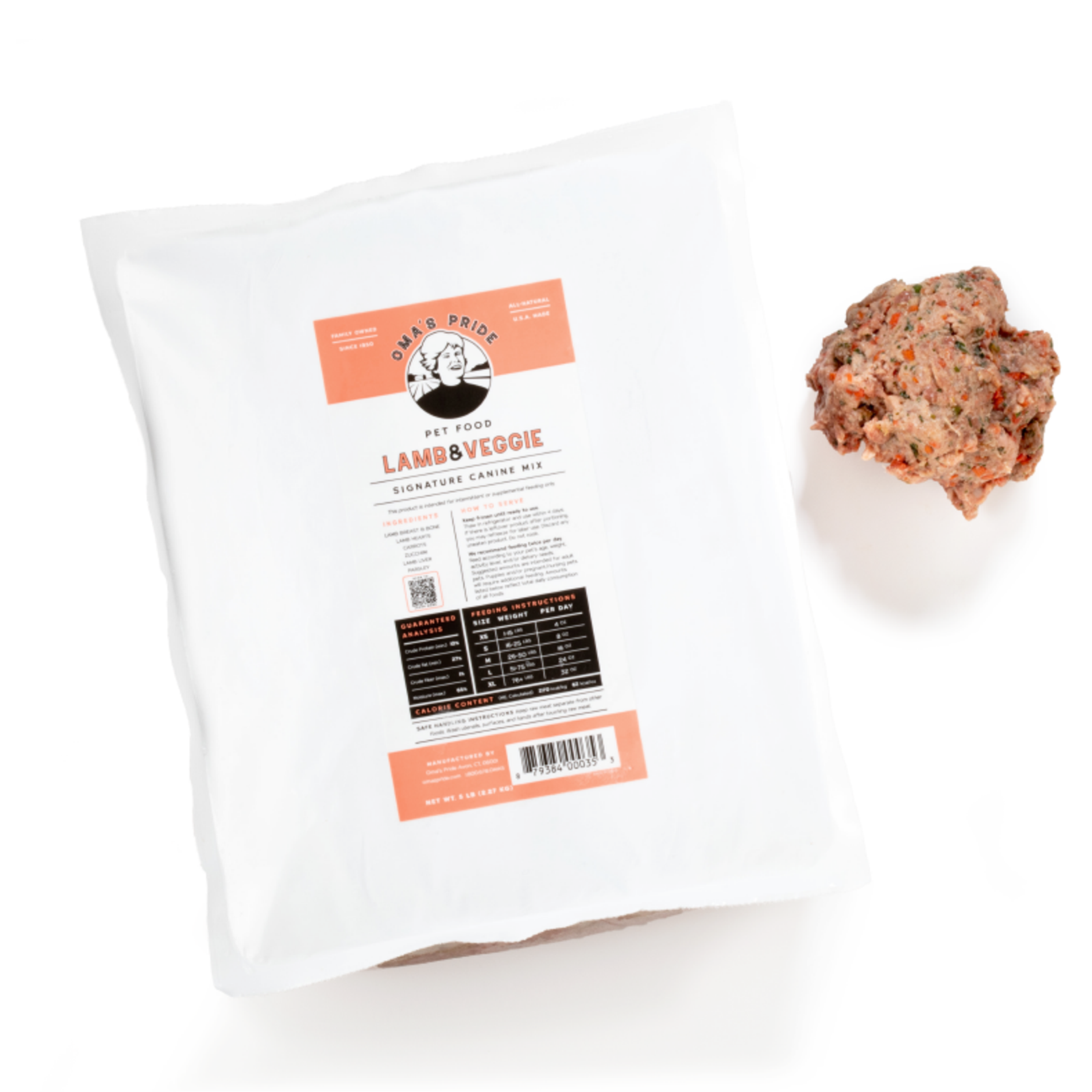 Oma's Pride Signature Canine Mix Lamb & Veggie Frozen Raw Dog Food