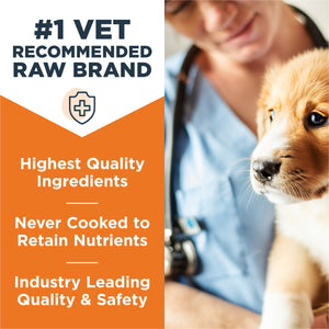 Made for growing puppies, Instinct Raw is protein packed with meat and organs and non-GMO vegetables, fruits + vitamins & minerals. We use whole-food ingredients like cage-free chicken and never include grain, corn, wheat, soy, artificial colors or preservatives. We believe in the power of raw nutrition because we know the good it can do. Unlock your puppy's potential to thrive with Instinct Raw.