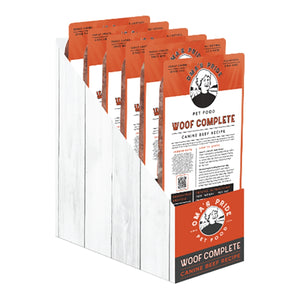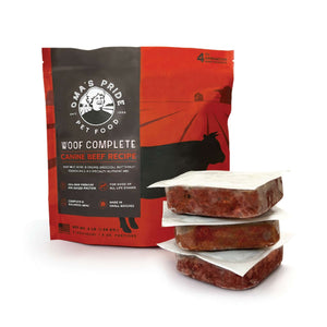 Woof Complete Dog Recipes are pre-portioned raw dog food meals. These recipes meet and exceed AAFCO’s nutritional standards for dogs of all life stages.