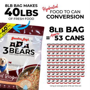 Main Ingredients: Beef, Beef Liver, Oats, Flax, Carrots, Coconut, Kale, Cranberry, Turmeric, Ginger.