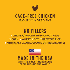 Chicken, Chicken Meal, Barley, Sorghum, Oatmeal, Brown Rice, Chicken Fat (preserved with Mixed Tocopherols), Turkey Meal, Ground Flaxseed, Natural Flavor, Salt, Fish Meal, Carrots, Potassium Chloride, Vitamins (Vitamin E Supplement, Niacin Supplement, Thiamine Mononitrate, d-Calcium Pantothenate, Vitamin A Supplement, Riboflavin Supplement, Pyridoxine Hydrochloride, Vitamin B12 Supplement, Folic Acid, Vitamin D3 Supplement, Biotin), Apples, Blueberries, Cranberries, Dried Yeast, Choline Chloride, Minerals (Zinc Proteinate, Iron Proteinate, Copper Proteinate, Manganese Proteinate, Sodium Selenite, Ethylenediamine Dihydriodide), Freeze-Dried Pollock, Yeast Culture, Dried Lactobacillus acidophilus fermentation product, Dried Enterococcus faecium Fermentation Product, Dried Aspergillus oryzae Fermentation Extract, Dried Trichoderma longibrachiatum Fermentation Extract, Dried Bacillus subtilis Fermentation Extract, Pumpkin Seeds, Rosemary Extract.