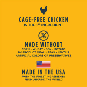 Chicken, Chicken Meal, Barley, Sorghum, Oatmeal, Brown Rice, Chicken Fat (preserved with Mixed Tocopherols), Turkey Meal, Freeze-Dried Chicken, Ground Flaxseed, Natural Flavor, Salt, Fish Meal, Freeze-Dried Chicken Liver, Pumpkin Seeds, Carrots, Potassium Chloride, Freeze-Dried Chicken Heart, Vitamins (Vitamin E Supplement, Niacin Supplement, Thiamine Mononitrate, d-Calcium Pantothenate, Vitamin A Supplement, Riboflavin Supplement, Pyridoxine Hydrochloride, Vitamin B12 Supplement, Folic Acid, Vitamin D3 Supplement, Biotin), Apples, Blueberries, Cranberries, Dried Yeast, Montmorillonite Clay, Miscanthus Grass, Choline Chloride, Minerals (Zinc Proteinate, Iron Proteinate, Copper Proteinate, Manganese Proteinate, Sodium Selenite, Ethylenediamine Dihydriodide), Freeze-Dried Pollock, Yeast Culture, Dried Lactobacillus acidophilus Fermentation Product, Dried Enterococcus faecium Fermentation Product, Dried Aspergillus oryzae Fermentation Extract, Dried Trichoderma longibrachiatum Fermentation Extract, Dried Bacillus subtilis Fermentation Extract, Salmon Oil, Rosemary Extract.