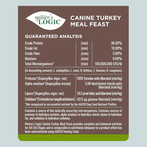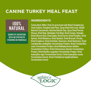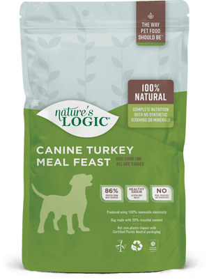 Nature’s Logic Canine Turkey Meal Feast delivers 86% of its protein from high quality meat sources and features turkey meal as the first ingredient. It contains no peas, potatoes, corn, wheat, or soy. It is gluten free and includes prebiotics and probiotics to support healthy digestion. Like all Nature’s Logic kibbles, this recipe delivers its nutrition through wholesome and natural ingredients and contains no added synthetic vitamins and minerals. It’s complete and balanced for dogs of all ages, sizes, and breeds.