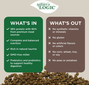 Nature’s Logic Feline Rabbit Meal Feast delivers 90% of its protein from high quality meat sources and features rabbit meal as the first ingredient, which delivers natural sources of taurine. It contains no peas, potatoes, corn, wheat, or soy. It is gluten free and includes prebiotics and probiotics to support healthy digestion. Like all Nature’s Logic kibbles, this recipe delivers its nutrition through wholesome and natural ingredients and contains no added synthetic vitamins and minerals. It’s complete and balanced for cats of all ages, sizes, and breeds.