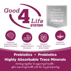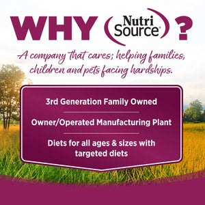 NutriSource® grain inclusive formulas deliver compact nutrition and include prebiotics, probiotics, and postbiotics to help support digestions and a healthy gut.