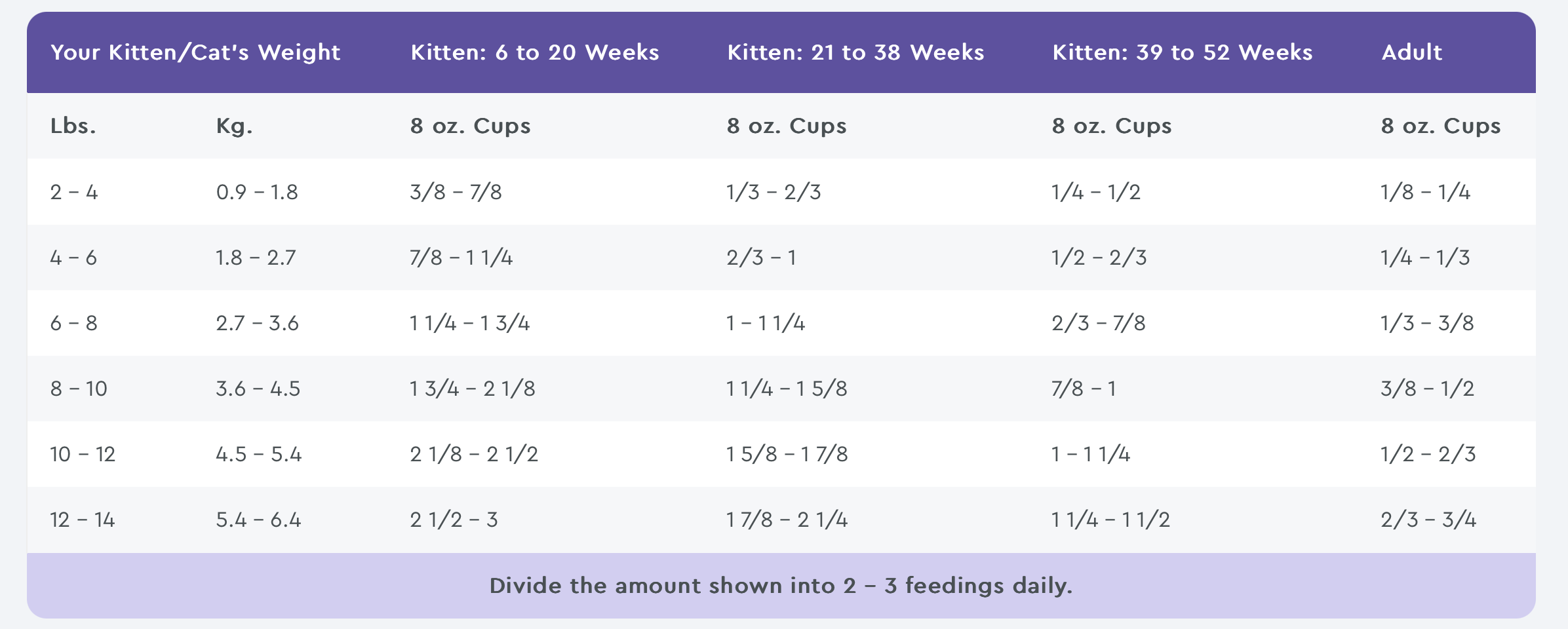 Metabolizable Energy (calculated): 4,134 kcals per kg, 470 kcals per cup