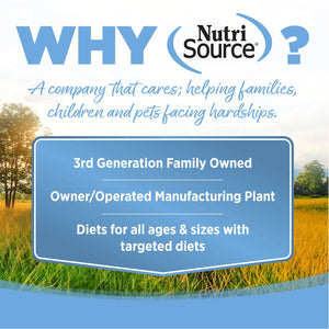 NutriSource® grain inclusive formulas deliver compact nutrition and include prebiotics and probiotics to help support a healthy gut.