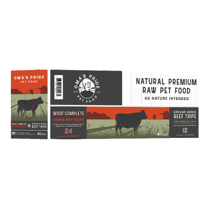 Oma's Pride Frozen Raw Woof Complete Canine Beef & Ground Green Beef Tripe Variety Pack for Dogs & Cats
