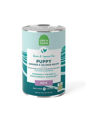 This complete and balanced pâté recipe formulated for puppies features G.A.P. certified, humanely raised chicken and Ocean Wise recommended, wild-caught salmon. In addition, chicken liver and non-GMO vegetables such as sweet potatoes, carrots and spinach are added to provide a highly nutritious, delicious meal your pup will crave. DHA is also added to support healthy growth and development.