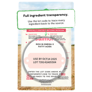 Because of their ingredient sourcing, transparency, and testing, Open Farm has a wide variety of healthy, trustworthy products that we love. Open Farm uses 100% animal welfare certified meats from grass-fed, pasture raised animals, with no growth hormones or antibiotics, ever. They use 100% Wild-caught, sustainably sourced fish as well as Non-GMO fruits and vegetables. If farming or fishery partners can’t pass regular audits to ensure optimal practices, Open Farm does not work with them. Learn more about Open Farm's sourcing practices here.