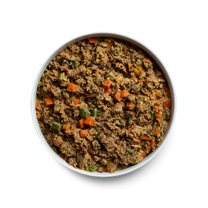 This slow-cooked recipe is packed with nutrients to support healthy growth and prevent allergies, thanks to a mix of humanely raised chicken and pork, wild-caught, Ocean Wise® approved salmon, vitamin-rich beef liver, and non-GMO veggies and superfoods, plus chicken bone broth to support healthy joint development and prebiotic fiber to healthy digestion.
