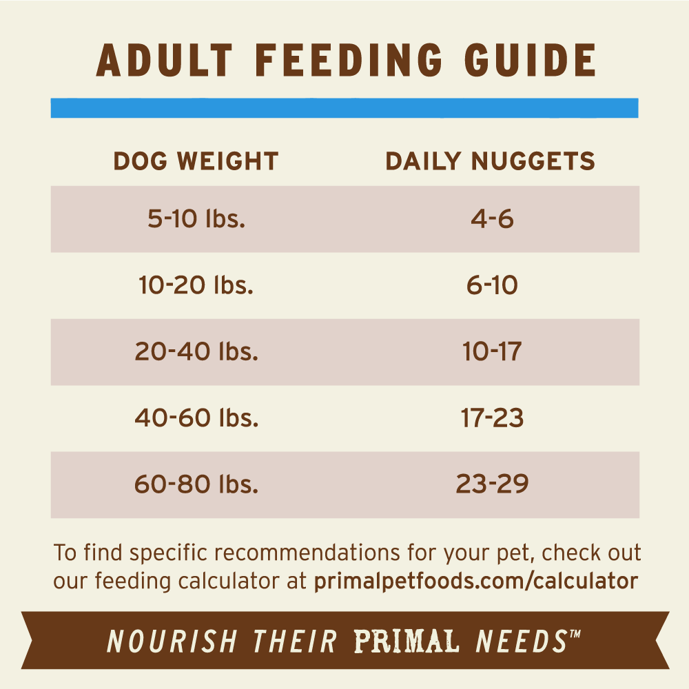 It’s easy to feed your dog real, whole foods that deliver optimal nutrition and digestibility with Primal Freeze-Dried Raw Nuggets. Our Freeze-Dried Raw Duck Recipe features cage-free duck raised without antibiotics, steroids or added hormones. It is free from synthetic vitamins and minerals and made with cage-free Turkey and wild-caught Fish. Simply crumble, hydrate with warm water, and serve!