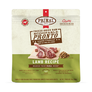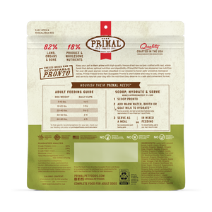 Unleash your pup’s wild tendencies with Raw Pronto Lamb Recipe Dog Freeze-Dried Food from Primal! Made in the USA with high-quality proteins, this freeze-dried dog food provides a 100% complete and balanced raw food diet for adult pups. It’s crafted with grass-fed lamb raised on USDA-certified organic fruits and vegetables without the use of steroids or added hormones. Conveniently packaged and dinner-ready in seconds—this dog feed’s highly-digestible formula maximizes nutrient absorption to help support healthy weight, skin, eyes, oral health and more.