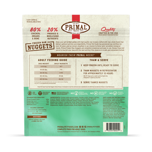 Nourish your dog’s primal needs with complete and balanced, easy-to-use Primal Frozen Raw Nuggets. Our Chicken Recipe raw dog food features cage-free chicken raised without antibiotics, steroids, or added hormones. There’s no need to grind, chop, measure, or mix. Simply thaw and serve as a meal or a mixer to keep your pup in their prime. Available in 3-pound resealable bags.