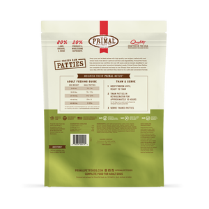 Primal’s complete and balanced Frozen Raw Patties come in larger portions ideal for large-breed dogs and multi-dog families. Our Lamb Recipe features grass-fed lamb raised without antibiotics, steroids, or added hormones. It also includes naturally derived vitamins and minerals for optimal nutrition and digestibility. What you won’t find in our dog food recipes is synthetic vitamins and minerals, ever. Just thaw and serve. Available in 6-pound resealable bags.