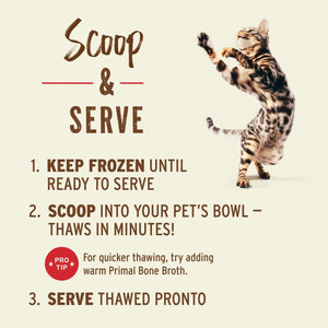 This nourishing, biologically appropriate, synthetic-free raw cat food thaws in minutes and comes in a convenient, bite-sized, easy-to-portion format. Primal’s Pork Recipe Frozen Raw Scoopable Pronto features crate-free pork raised without antibiotics, steroids, or added hormones and other real, whole foods that deliver optimal nutrition and digestibility. Just scoop and serve to keep your cat in their prime. Available in 1-pound resealable bags.