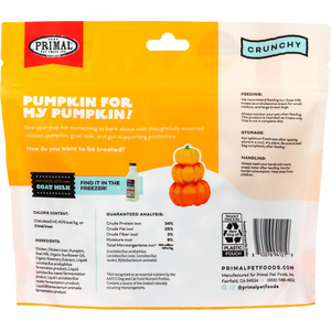 Give your pup-kin something to bark about with thoughtfully-sourced chicken, pumpkin, goat milk, and gut-supporting probiotics.