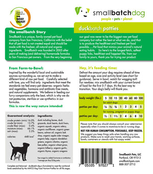 Testing: Small Batch has a zero-tolerance policy for harmful pathogens in their products so, after production, they employ a test/hold protocol and test every batch they make. They take multiple samples from each batch throughout various phases of production to send off for testing. Once those tests come back clear of pathogens, they are then released to distributors to be sold. Batches are also tested for nutritional adequacy to ensure that foods are not only safe for your pet, but nutritious enough to be complete and balanced and provide them with everything they need in the correct amounts.