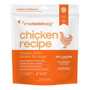 Small Batch is one of our favorites because they use only whole foods to balance their meals, avoiding synthetic vitamins. Nutrients from real food are more easily absorbed than their synthetic counterparts. They source only pasture-raised, grass-fed, and finished animals that are never treated , along with organic produce. Their products undergo regular testing to ensure both nutritional adequacy and safety.