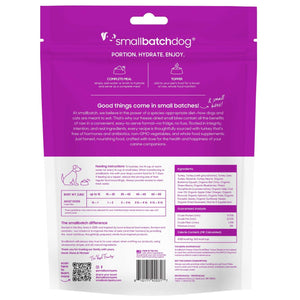 When transitioning to smallbatch, mix with your dog's current food for 5-7 days. If feeding as a topper, reduce the serving size of their regular food accordingly. Always provide access to clean fresh water.