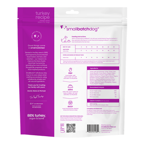 88% humanely raised and harvested turkey, 10% organic produce, 2% natural supplements