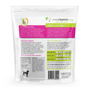 78% humanely raised and harvested rabbit, 20% organic produce, 2% natural supplements