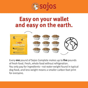 1 pound of Sojos mix makes up to 5 pounds of drool-worthy fresh food.