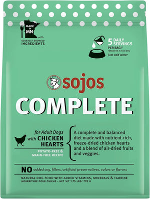 Sojos Complete Chicken Recipe Adult Dog Food makes raw eating achievable and enjoyable for pets and their parents. This mix is freeze-dried and shelf stable, combining the convenience of kibble with the nutritional benefits of regular whole food diets. Sojos’ recipe is free of genetically engineered and artificial ingredients, as well as soy, fillers, and preservatives. It contains only fresh, raw ingredients that come back to life when mixed with water. Real, raw, and rich in flavor, both you and your dog will paw-sitively adore Sojos Complete!