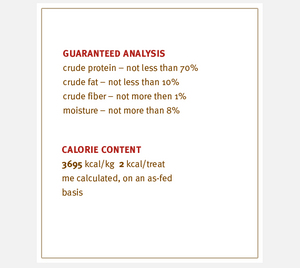 3695 kcal/kg 2 kcal/treat me calculated, on an as-fed basis