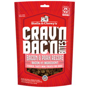 Our Crav'n Bac'n Bites will have your dog begging for more! These treats have a wildly irrestistable taste and bacon as #1 ingredient, and are also only 3 calories per treat.