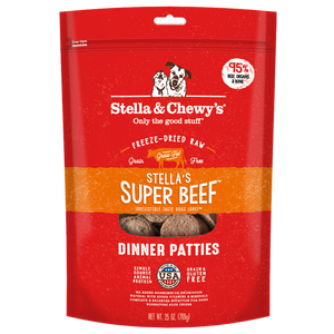 These Stella's Super Beef freeze-dried patties are formulated to mirror a dog’s ancestral diet! There has never been a more convenient way to feed a biologically appropriate raw food diet. We believe dogs deserve to thrive on real, minimally processed food - the way nature intended.
