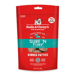 These Surf 'n Turf freeze-dried patties (5.5 oz offering) are formulated to mirror a dog’s ancestral diet! There has never been a more convenient way to feed a biologically appropriate raw food diet. We believe dogs deserve to thrive on real, minimally processed food - the way nature intended.