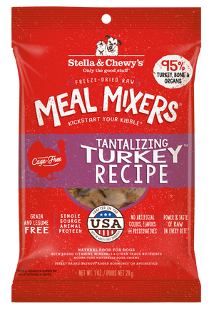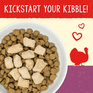 Kickstart your kibble with these Tantalizing Turkey Meal Mixers, delivering a boost of raw and irresistible taste! One simple scoop is all it takes to turn your dog’s everyday kibble into awesome raw nutrition. Simply scoop, mix-in and watch your dog go crazy for mealtime!