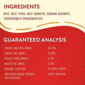 Beef,beef kidney,beef liver,sodium alginate,tocopherols (preservative).