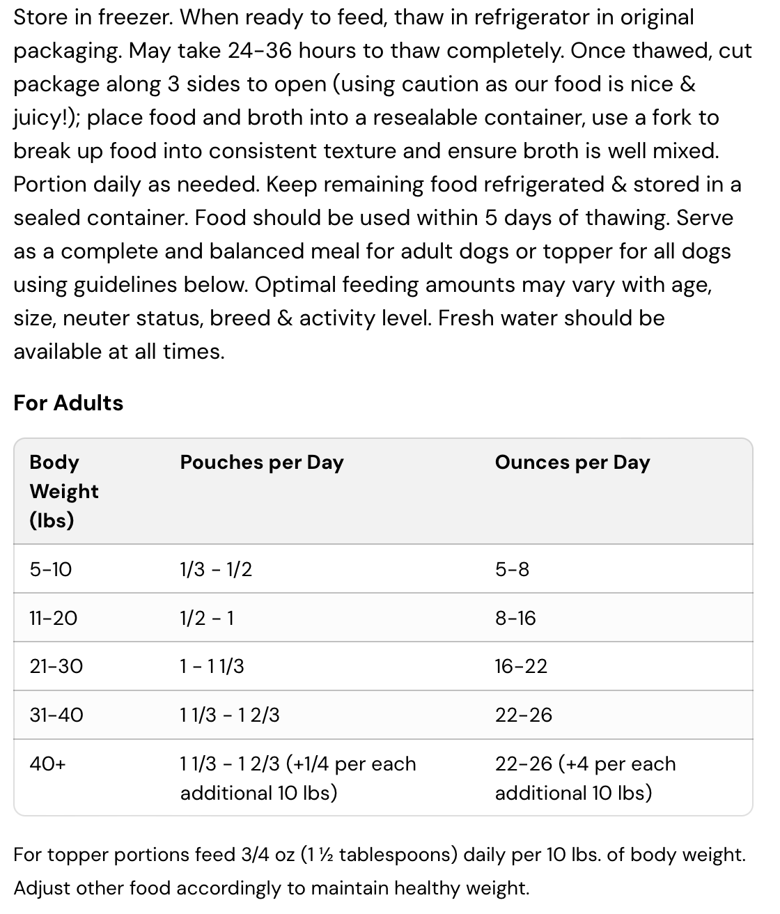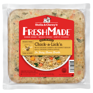 Stella & Chewy’s FreshMade is fresh food made easy! Human grade whole foods are gently cooked in their own juices for a craveable taste and tender texture. Reviewed by a board-certified veterinary nutritionist and made with only the good stuff – 60% nutrient-rich poultry & organ meats paired with healthy fruits, veggies, superfoods, botanicals & tasty bone broth - feeding a tasty, fresh meal is easier than ever! Simply thaw & serve as a complete meal or tasty topper and watch those tails wag!