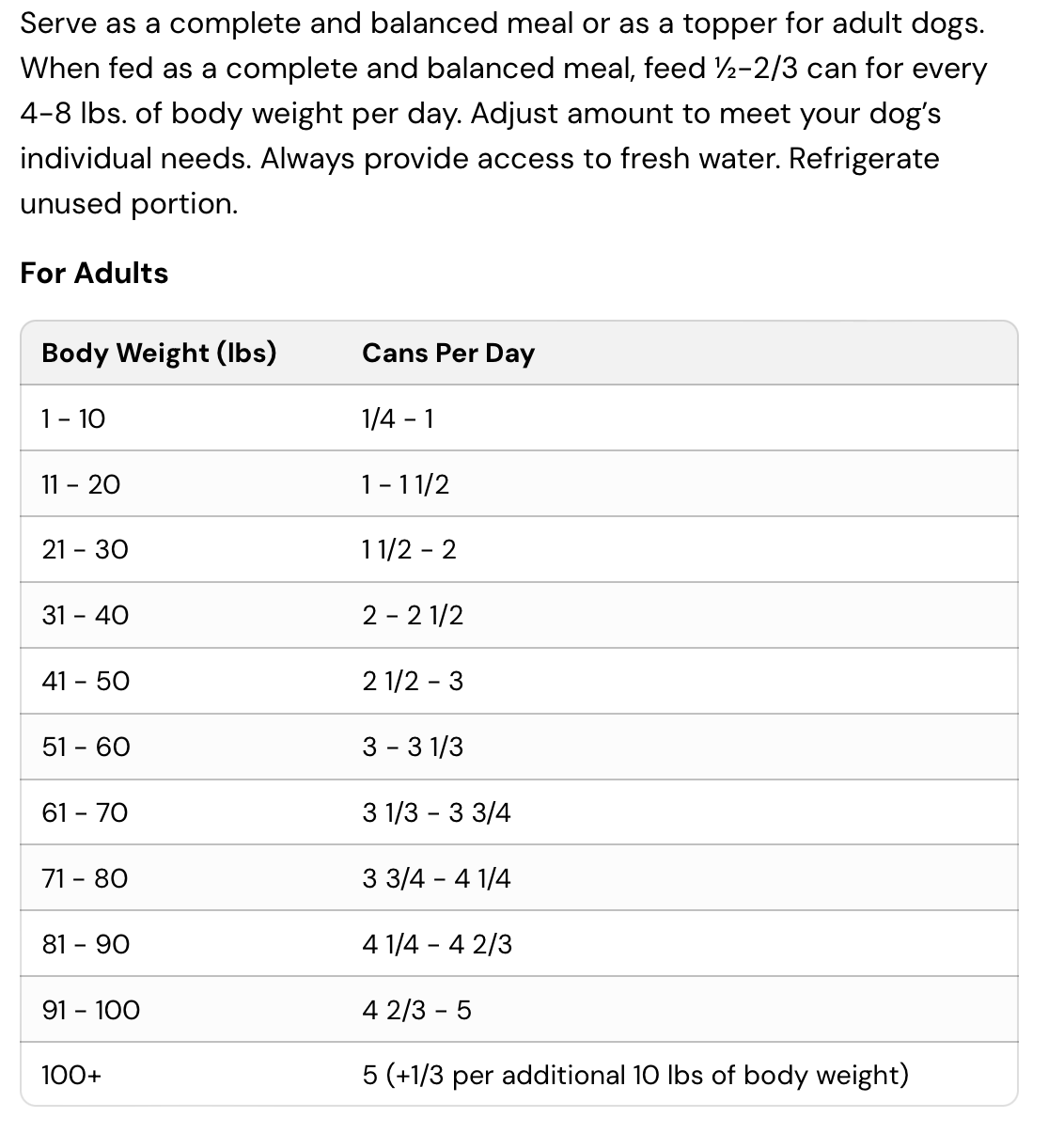Crude Protein 8.5% (min), Crude Fat 4.5% (min), Crude Fiber 2% (max), Moisture 81% (max)