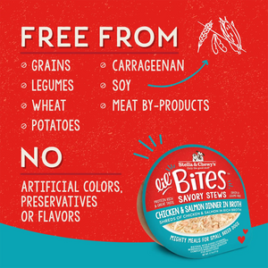 Free from grains, legumes, potatoes, carrageenan, wheat, meat by-products, soy, artificial colors, preservatives & flavors